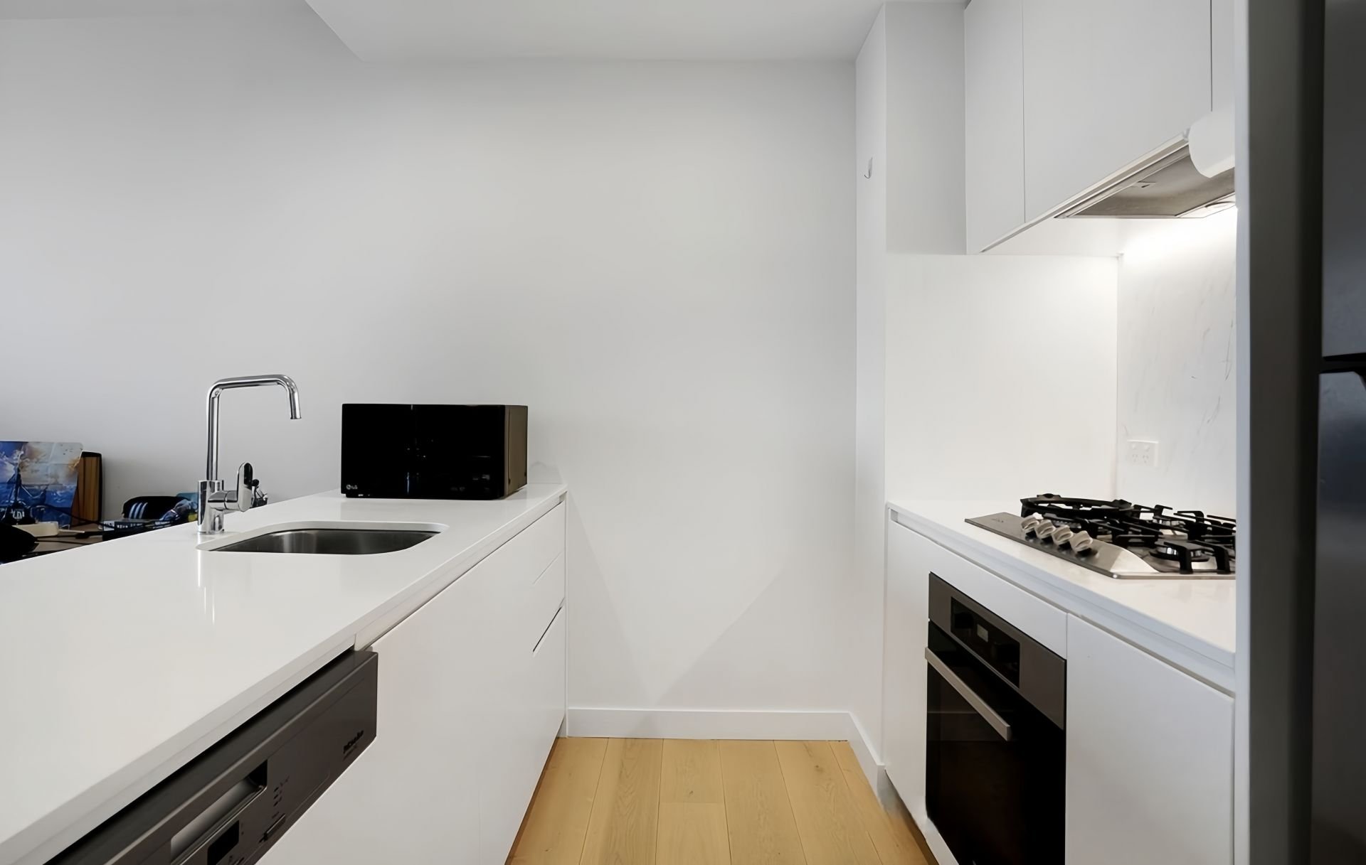 A sleek, well-appointed kitchen with Miele stainless steel appliances and ample storage completes the heart of the home. Additional features include secure basement car parking, split-system heating/cooling, and a secure building entrance.